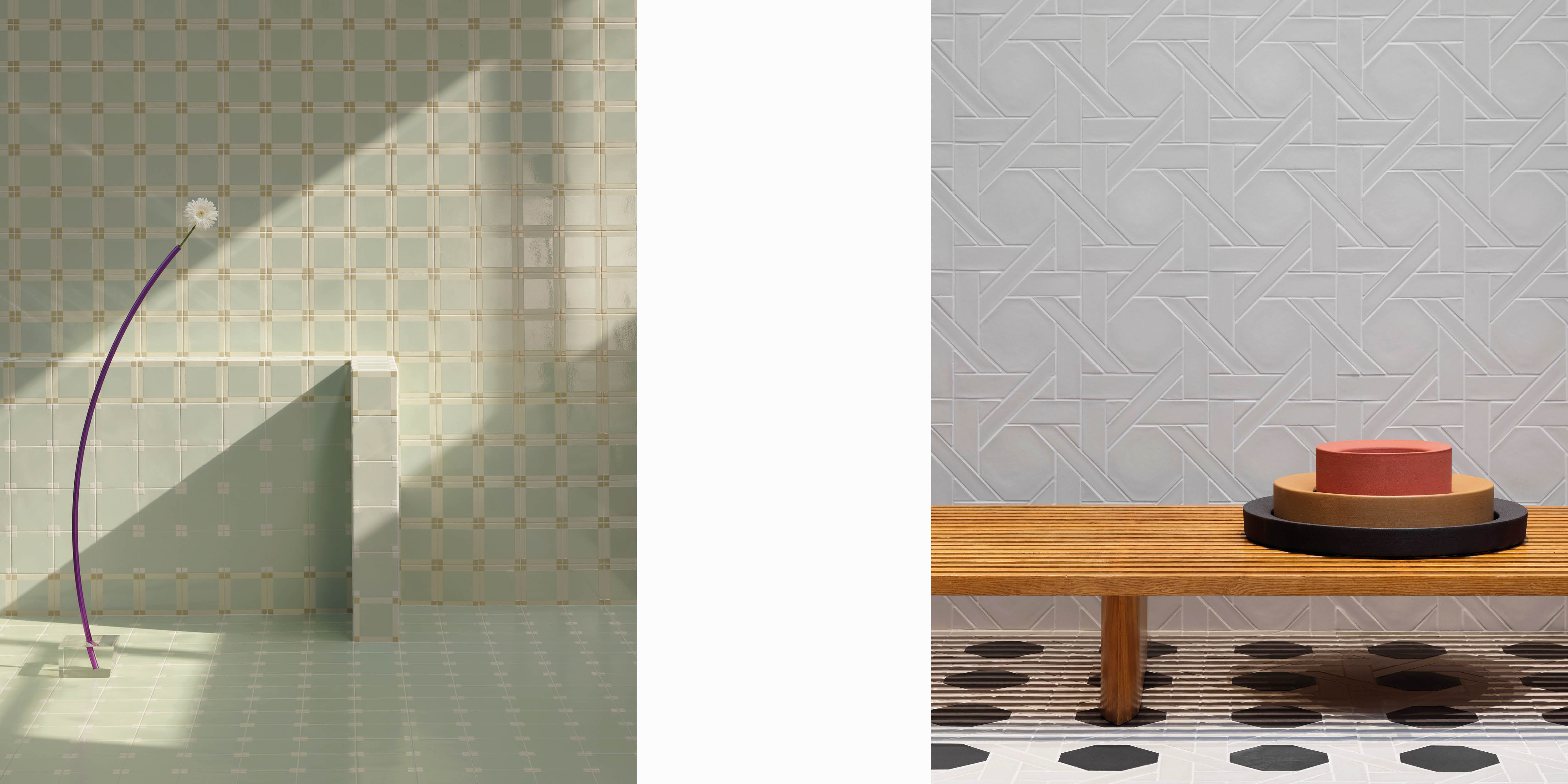Form is the generative principle behind the collaboration with Neri&Hu, expressed through two complementary collections: Weaving features ceramic coverings inspired by the art of bamboo weaving, while Hé is a new Editions line consisting of tableware objects that reinterpret traditional Chinese ritual geometries.